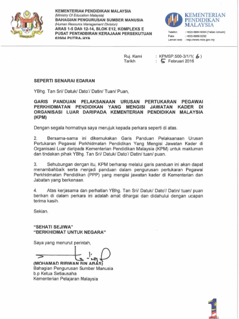 Shafarin bin Nasuredin Setiausaha Bahagian. 03 8891 7000 Fax. Dokumen ini telah diperbitkan oleh Bahagian Pengurusan Sumber Manusia Kementerian Pendidikan Malaysia.